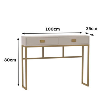 This Large 2 Drawer Dressing Table and Pair of 3 Drawer Bedside Tables from the Elle Stone Range is a gorgeous furniture set that will bring a touch of luxury and elegance into your home. These modern yet contemporary pieces are designed with a sleek gold frame and golden handles and complete with a stone pale taupe finish. This set includes a beautiful two drawer dressing table and pair of three drawer bedside tables. Crafted from a coated MDF and metal frame.