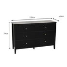 This Large 6 Drawer Chest of Drawers from the Hales Black Range is a simple yet sleek selection of contemporary furniture. This Range is made of manufactured wood and metal. It comes with a sleek Black finish, Gold metal handles. Items in this Range come with fluted detailing to the drawer fronts.