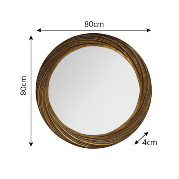 This Large Antique Gold Round Swirl Mirror 80cm x 80cm is a stunning, glamorous round wall mirror, ideal for fans of orange gold decor and luxurious homeware. Made of wood, glass and metal, this mirror has a round shape and comes with a gold, foiled finish to the frame.
