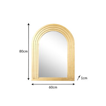 This Large Gold Arched Wall Mirror 80cm x 60cm is a lovely, glamourous wall mountable mirror, ideal for lovers of gold decor and metallic design. Made of wood, metal and glass, this mirror has a beautiful gold frame and slatted design and would make a striking choice for any space.