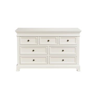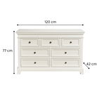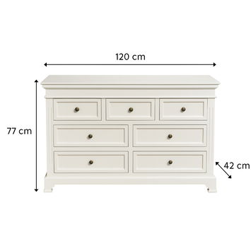 This Large Ivory 7 Drawer Chest of Drawers from the Daventry Ivory Range is a beautiful, stylish storage choice for fans of vintage design and light bedroom furniture. Made of wood, this chest has a vintage inspired Georgian design and comes with simple grooved detailing and rounded brass style handles. It comes complete with an Ivory painted finish.
