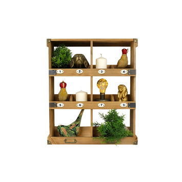 This Large Wooden Three Tier Wall Shelving Unit is ideal wall storage for a rustic, vintage or country inspired interior space. Made of wood and metal, this wall unit has a three shelves, with Six square storage compartments. It comes with a natural wooden finish and white and black number detailing.