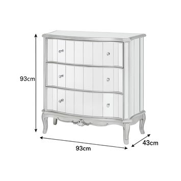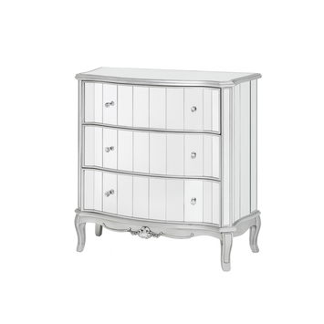 This Mirrored Closet & Chest of Drawers from the Tiffany Range is a beautiful, vintage inspired furniture set, perfect for those searching for luxurious bedroom storage. Made of wood, glass and metal, each piece has a mirrored design, with ornate detailing, crystal style handles and ornate detailing.