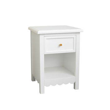 The overall design of this bedside table makes it ideal to store your nightly accessories. It's not just a piece of furniture, but a bedside made in wood, with a scalloped edge that is perfect for all homes.