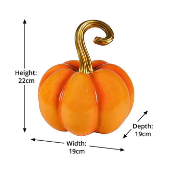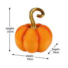 This Orange & Gold Pumpkin Ornament is a stylish choice for fans of Autumn and Halloween inspired decor and Orange accessories. Made of Ceramic, this item comes with a Pumpkin shaped design and an Orange speckled finish.