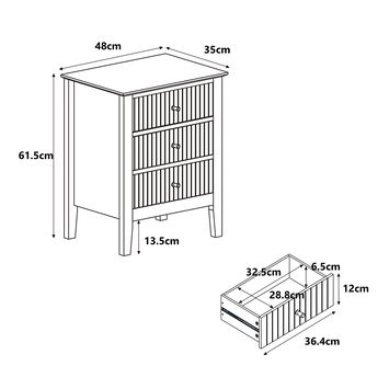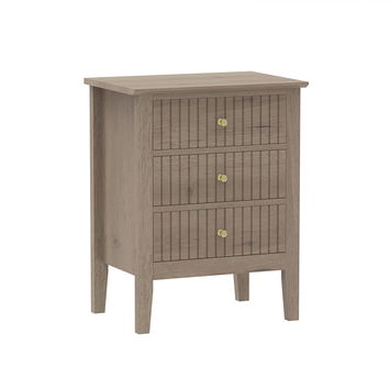 This Pair of 3 Drawer Bedside Tables from the Hales Pale Wood Range are a stylish, neutral storage choice, perfect for placing in a bedroom, living room or dressing room space. Made of Coated MDF and metal, each of these side tables come with a stylish 3 drawer design and fluted detailing on the frontage. They come complete with a stunning pale wooden finish and your choice of gold metal handles or black metal handles.
