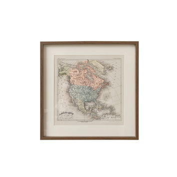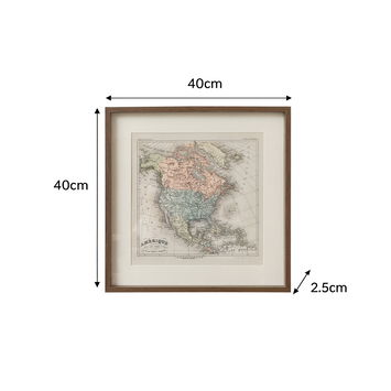 This Rustic America Map Print Framed Wall Art - 40cm is a beautiful, colourful vintage style wall decor choice, ideal for fans of rustic finishes and map displays. Made of wood, glass, paper and iron, this wall print has a brown, aged design with a rustic finish.