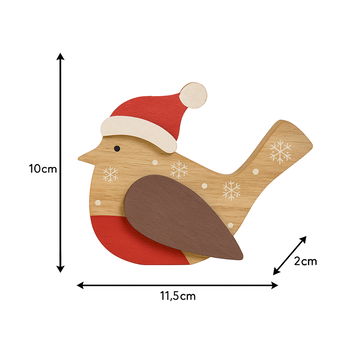 This Rustic Wooden Red Robin Christmas Ornament is perfect for adding some rustic charm to any home decor this Christmas. Made from wood, this ornament has a red robin design and comes with white snowflake detailing and a red and white Santa's Hat.