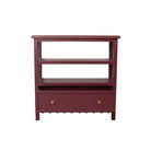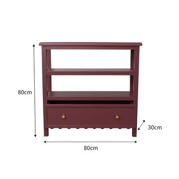 This Wine Red Scalloped Storage Sideboard with Drawer and Shelving from the Staunton Wine Red Range is a simple, elegant storage furniture piece that could easily blend into modern, vintage or farmhouse style interiors. Crafted from wood and metal, this sideboard has a large drawer design and comes with storage shelves. It is completed with scalloped detailing, rounded brass style handles and a wine red painted finish.