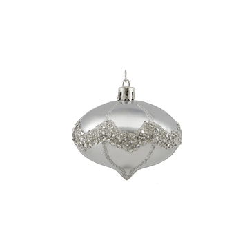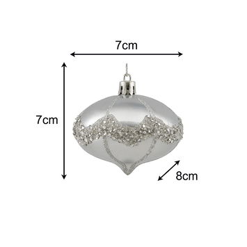 This Set of 3 Silver Glitter Jewelled Baubles are a glamorous festive choice, perfect for lovers of silver decor and jewelled detailing. Made of resin and glass, these baubles have an onion shaped design and come with a ice silver finish. Each bauble is completed with silver glitter and jewel detailing.