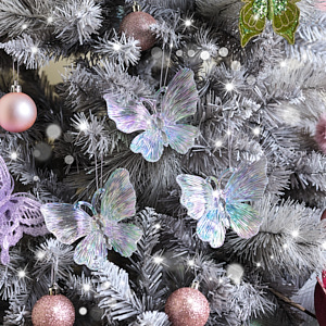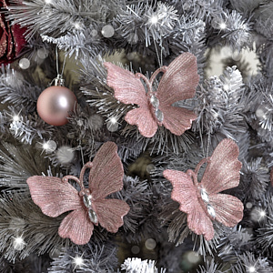 A lovely set of decorations that could be attached to a tree, garland or wreath. Due to their butterfly shape and glitter finish, these decorations are best suited for modern, eclectic or glamorous festive themes. They could also be used year round for lovers of butterflies.