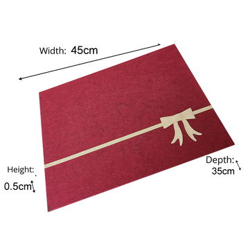This Set of 4 Dark Red Rectangular Felt Placemat with Champagne Gold Bow would make a lovely, glamorous addition to any Christmas dining table, coffee table or side table. Made of felt, these placemats have a simple design and come with a Red and champagne gold finish.
