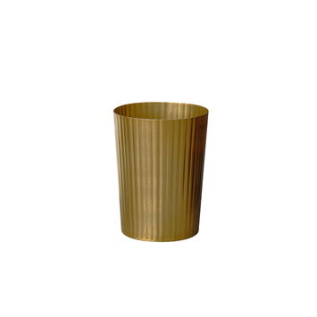 This Shiny Gold Reeded Metal Paper Bin 21cm x 27cm is a great way to bring a touch of glamour to your home decor. Perfect for placing in a bedroom, bathroom or office space. The bin is made from metal in a round design with a reeded edge detailing and comes with a shiny, metallic gold finish.