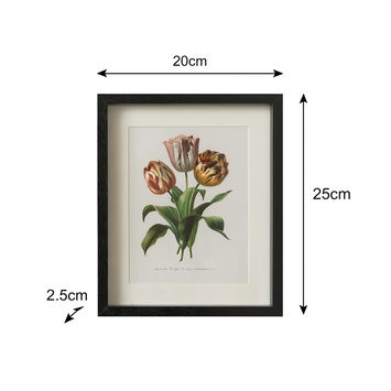 This Vintage Red Tulip Flower Framed Wall Print 20cm x 25cm is a beautiful, colourful vintage style wall decor choice, ideal for fans of colourful finishes and blue displays. Made of wood, glass, paper and iron, this wall print has a white, brown design with a red tulip flower design.