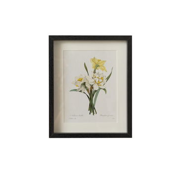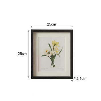 This Vintage White Daffodil Flower Framed Wall Print 20cm x 25cm is a beautiful, colourful vintage style wall decor choice, ideal for fans of colourful finishes and blue displays. Made of wood, glass, paper and iron, this wall print has a white, brown design with a white daffodil flower design.