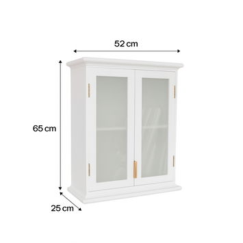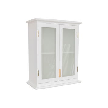This White Frosted Glass Wall Cabinet is a stylish, contemporary storage choice for any bathroom, kitchen or office space. Made of wood, this wall cabinet has a white painted finish and frosted glass fronted doors. It comes complete with Gold handles.