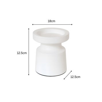 This White Metal Round Pillar Candle Holder - 18cm is a neutral yet elegant home accessory, perfect for lovers of everything white and quality candlesticks. Crafted from metal, this candle holder has a round, tapered design and a matching circular base. It is completed with a plain white, hand painted design.